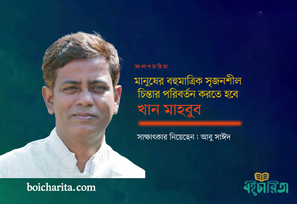 লেখক, শিক্ষক ও প্রকাশক খান মাহবুব। ১৯৭১ সালে ৩ মে নানাবাড়ি টাঙ্গাইলের করাতিপাড়ার জন্মগ্রহণ করেন। তিনি একজন সংস্কৃতিমনস্ক অনুসন্ধিৎসু মানুষ। ঢাকা বিশ্ববিদ্যালয়ের পাঠ চুকিয়ে নিজ উদ্যোগে গড়ে তুলেছেন পলল প্রকাশনী। তাঁর উল্লেখযোগ্যগ্রন্থ: বইমেলা ও বই সংস্কৃতি, বই, বইমেলা ও প্রকাশনার কথকতা, গ্রন্থ চিন্তন, টাঙ্গাইল জেলা পরিচিতি। তিনি ঢাকা বিশ্ববিদ্যালয়ের ‘প্রিন্টিং অ্যান্ড পাবলিকেশন স্টাডিজ’ বিভাগ চালুর অন্যতম উদ্যোগী। বর্তমানে ওই বিভাগের খণ্ডকালীন শিক্ষক হিসেবে কর্মরত। বইপড়া, প্রকাশনা ও প্রকাশনাবিষয়ক শিক্ষকতা নিয়ে কথা বলেন বইচারিতার সম্পাদক আবু সাঈদ।