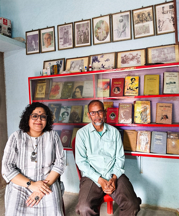 মুগ্ধ হয়েছেন তিনি। এই কথা শুনতে শুনতে মনে একটি প্রশ্নের জন্ম দেয়। জিজ্ঞেস করি, নজরুলের সৃষ্টির প্রতি তাঁর মায়ের ভালোবাসা কীভাবে তৈরী হল? চমৎকার উত্তর দিলেন ইউসুফ। বললেন, রাজারমপুরে তাঁর নানা আশরুদ্দীন মোল্লার বাড়িতে ছিল গ্রামোফোন রেকর্ড প্লেয়ার। তাকে ঘিরে বসত গান শোনার আসর। তৎকালীন সময়ে বিনোদনের মাধ্যম হিসেবে এটুকুই ছিল ভরসা। একের পর এক গান বাজত সেই যন্ত্রে, আর শুনে শুনেই সেই গান শিখে নিতেন সখিনা বিবি। মাত্র ৭ বছর বয়সে আফসার আলির সঙ্গে তাঁর বিয়ে হয়। পরবর্তীতে স্মৃতি থেকেই নজরুলের সেই গান শুনিয়েছেন তিনি তাঁর ছেলেমেয়েদের। মায়ের হাত ধরেই নজরুলের প্রতি ভালোবাসা তৈরী হয় ইউসুফের। চরম দরিদ্রতার সঙ্গে লড়াই করেও তিনি তাঁর নজরুল চর্চা অব্যাহত রেখেছেন। প্রতিদিন খুব ভোরে ঘুম থেকে ওঠেন। গ্রামের মসজিদে আজান দিয়ে দৈনন্দিন কাজকর্মে মনোনিবেশ করেন। অন্যের জমিতে কৃষিকাজ করে যতটুকু অর্থ রোজগার করেন, তা দিয়েই জীবন অতিবাহিত করেন। নিজের জমি বলতে কিছুই নেই। ৫৯ বছর বয়সে এই পরিশ্রম তিনি হাসিমুখেই করেন। কারও প্রতি কোন অভিযোগ নেই বরং সংসারের সকলের প্রতি তিনি আন্তরিক কৃতজ্ঞতা প্রকাশ করেন। নজরুল চর্চায় পরিবারের সকলে তাঁকে উৎসাহিত করেছেন। ছেলে ইয়াকুব আলি পেশায় রাজমিস্ত্রী, মেয়ে সুরাইয়া গৃহকর্মে নিপুণা। তাঁরাও নজরুলপ্রেমী। বাবার সঙ্গে নজরুল চর্চায় নিমগ্ন থাকেন। দীর্ঘ ৩০ বছর ধরে অক্লান্ত পরিশ্রম করে নজরুল সংক্রান্ত বহু তথ্য সংগ্রহ করেছেন ইউসুফ। যেখানে যখন খবর পেয়েছেন কোনও তথ্য সম্পর্কে, ছুটে গেছেন শুধুমাত্র নজরুলকে ভালোবেসে। বর্তমানে তাঁর সংগ্রহে নজরুলের লেখা বই যেমন রয়েছে ঠিক তেমনই দুই বাংলার বিশিষ্ট নজরুল গবেষকদের লেখা শতাধিক বই ও পত্রিকাও স্থান পেয়েছে তাঁর সংগ্রহশালায়। ২০০০ সালে নিজের গ্রাম রামনগরেই তৈরী করেছেন রামনগর নজরুল একাডেমি। শুরুতে অনেকে যুক্ত ছিলেন ঠিকই কিন্তু সময় যত এগিয়েছে মানুষের উৎসাহে ভাটা পড়েছে। এখন অনেকটা একার কাঁধেই দায়িত্ব তুলে নিয়েছেন তিনি। একাডেমির ঘরে নজরুলের বিভিন্ন ছবি স্থান পেয়েছে। তাঁর সঙ্গে দীর্ঘ ৪ ঘন্টার আলাপচারিতায় অনেক কিছু জানার সুযোগ হল। উপহার হিসেবে পেলাম রামনগর নজরুল একাডেমির বেশ কিছু বার্ষিক পত্রিকা। কাজী নজরুল ইসলামের স্মৃতি রক্ষা, তাঁর জীবন, সাহিত্য-সঙ্গীত ও সামগ্রিক অবদান সম্পর্কে গবেষণা পরিচালনা, রচনাবলি সংগ্রহ, পত্রিকা প্রকাশ ও প্রচার রামনগর নজরুল একাডেমির কর্মকাণ্ডের অন্তর্ভুক্ত। ইউসুফ আলির সম্পাদনায় ২০১২ সাল থেকে একাডেমির বার্ষিক পত্রিকার পথ চলা শুরু হয়। ২০২৪ সালে পত্রিকার সম্পাদকীয়তে ইউসুফ লিখেছেন, “অখণ্ড বাঙালি সত্তাও যখন আজ বিপন্ন বহিরাগত ভাব-সংস্কৃতি